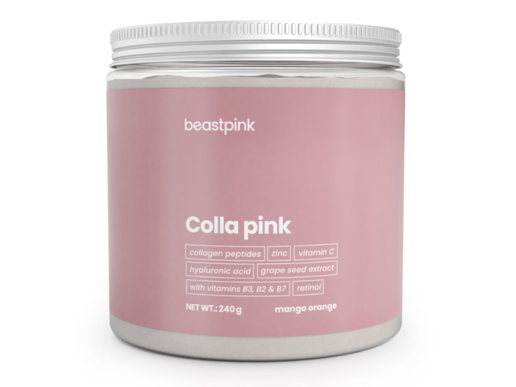 Colla Pink je jedinečný beauty nápoj pre ženy bez cukrov a tukov, ktorého hlavnou zložkou je prémiový kolagén. Je obohatený o kyselinu hyalurónovú, extrakt z hroznových jadier, vitamíny a minerály, ktoré sa starajú o to, aby bola pleť, nechty a vlasy krásne vyživené. Tento produkt je jednoducho “must have” vo fitness a beauty výbave každej ženy!