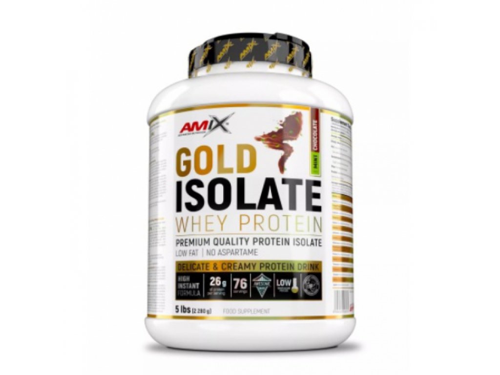 Amix ™ Gold Whey Protein Isolate je prémiový srvátkový izolát s vysokou biologickou hodnotou, ľahko stráviteľný, s komplexným zložením aminokyselín vrátane BCAA.