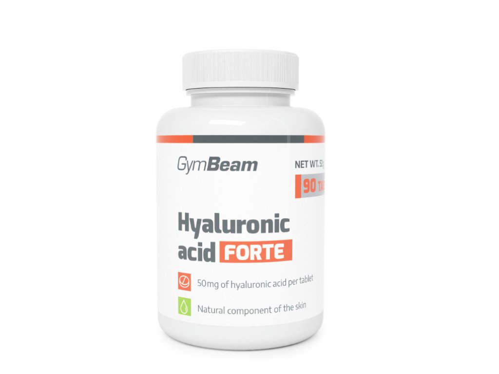 Produkt Kyselina hyalurónová Forte od GymBem je kyselina hyalurónová vo forme tabliet. V ľudskom tele sa prirodzene nachádza vo viacerých tkanivách, najmä v pokožke, vlasoch, kĺboch alebo priestore okolo očí. Hladina kyseliny hyaluronovej vekom klesá, čo vedie k vysychaniu kože a vzniku vrások. V jednej tablete prijmete až 50 mg kyseliny hyalurónovej.